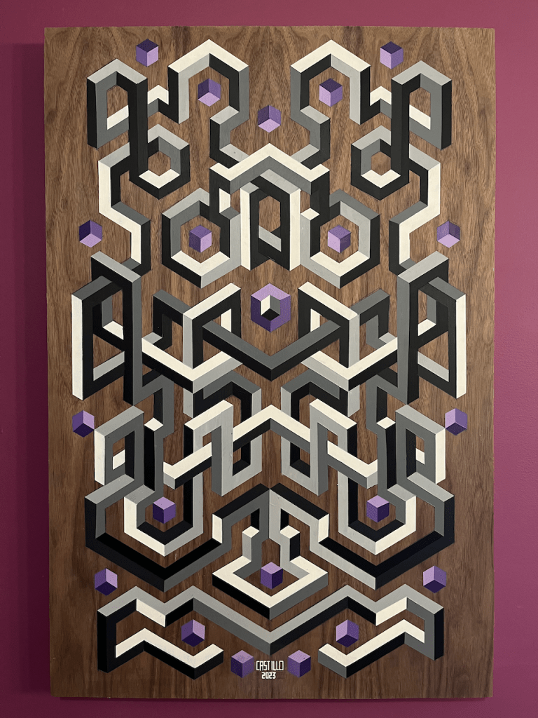 “Purple Accents”acrylic on walnut panel • 202320×30″ (51×76cm)private collection